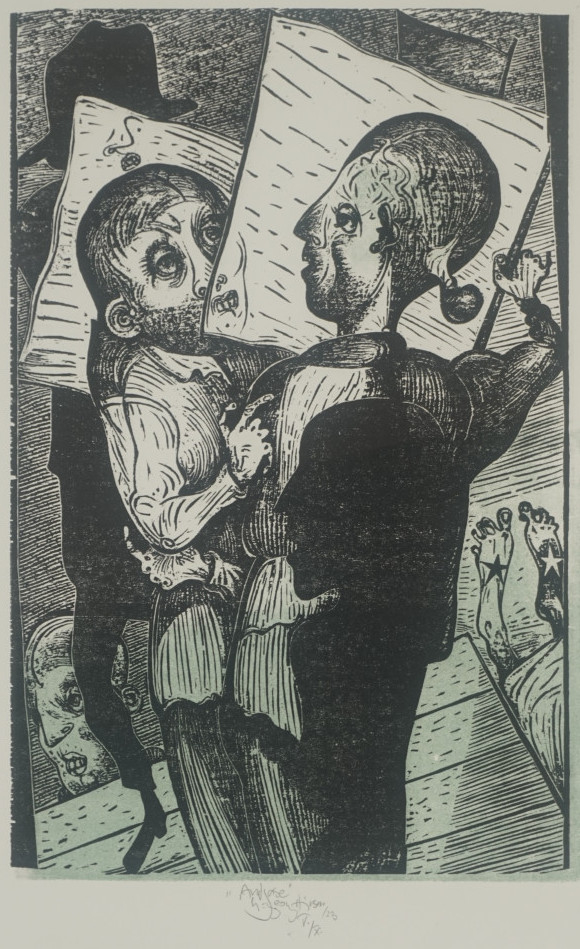 Galerie Bl.10 AngabeMappe: Hirsch K.-G. Edition Zwi 2024 "dies irae"Holzschnitt/ Irisdruck, 30,2x20,0 34,0x24,0 cm, V/X 2023Hirsch Karl-Georg