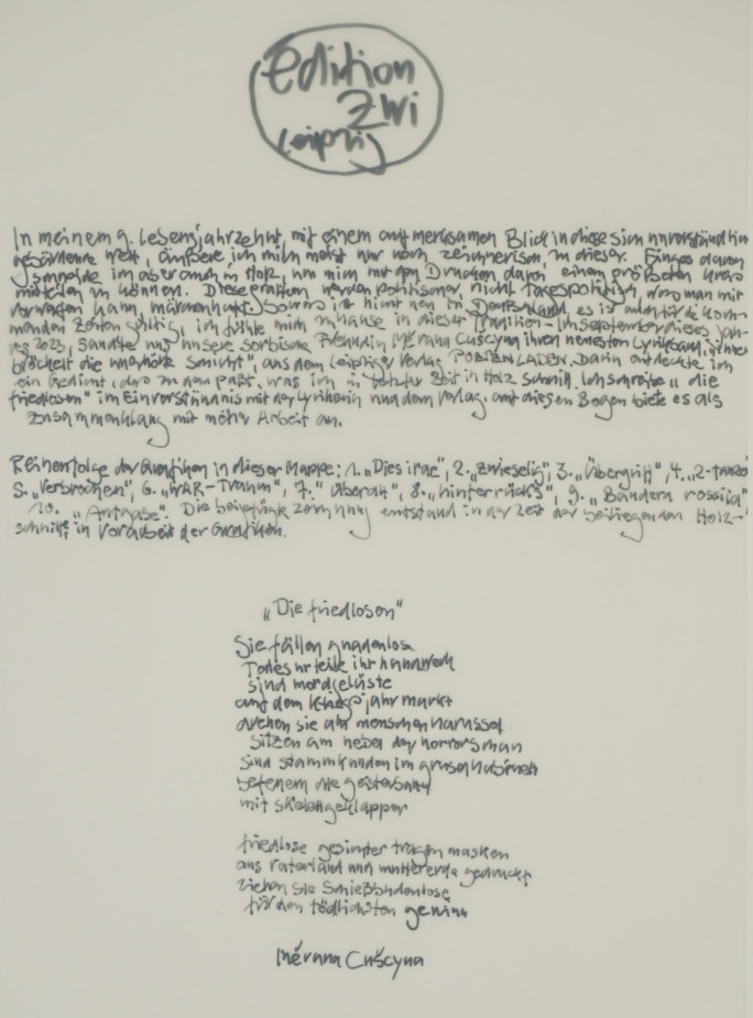 Galerie TextseiteMappe: Hirsch K.-G. Edition Zwi 2024 "dies irae"Feder in Tusche auf Transparentpapier, 33,7x23,7 cm, V/X 2024Hirsch Karl-Georg