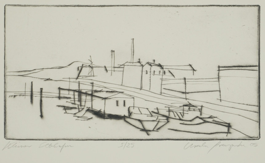 Galerie Kleiner ElbhafenMappe: Für Dieter Schmidt zum 29.7.2005Kaltnadel, 13,3x25,3 21,0x30,0 cm, 5/25 2005Strozynski Ursula