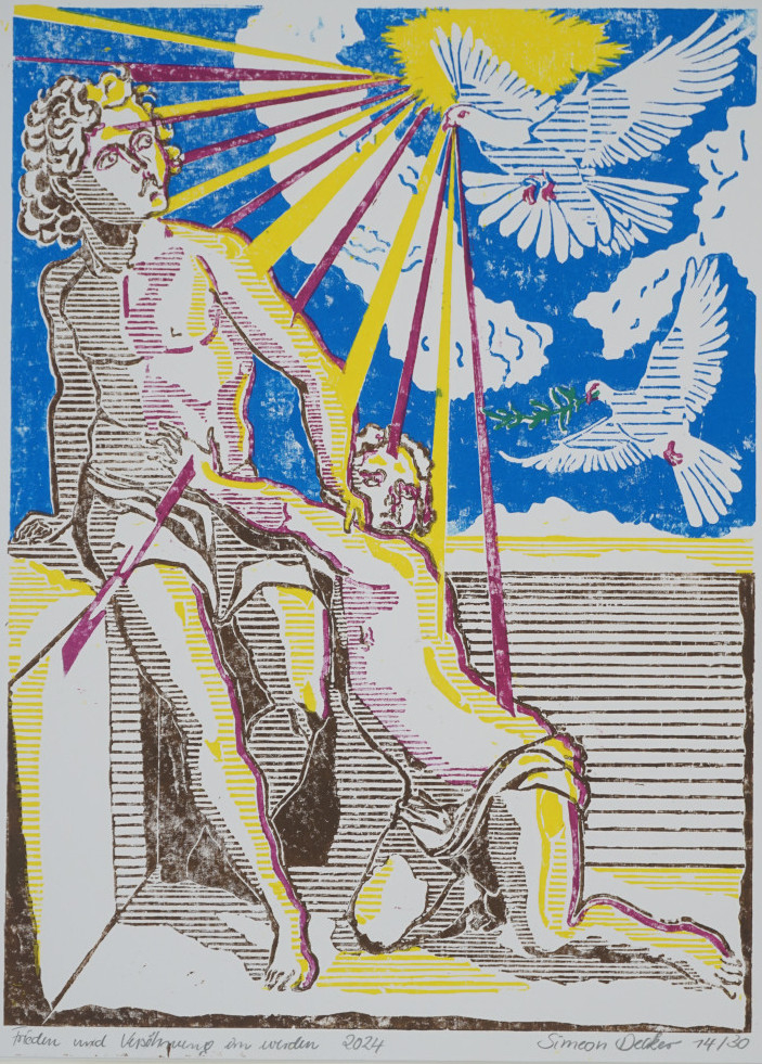 Galerie Frieden und Versöhnung im werdenMappe: 23. HolzbildhauerpleinairFarbholzschnitt, 38,0x27,7 40,0x39,8 cm, 14/30 2024Decker Simeon