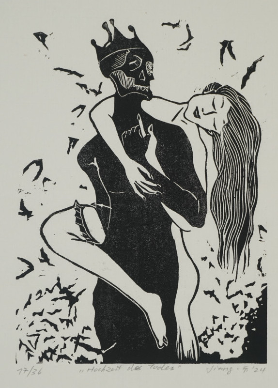 Galerie Hochzeit des TodesMappe: 23. HolzbildhauerpleinairLinolschnitt, 29,0x21,0 40,0x30,0 cm, 17/36 2024Bian-Harbort Jiang