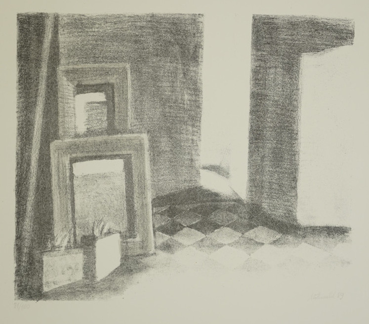 Galerie InterieurMappe: Berliner Grafikpresse Otto Möhwald 10 LithoLithografie- Kreide,Spritzton, 37,5x46,0 49,0x59,3 cm, 81/100 1989Möhwald Otto