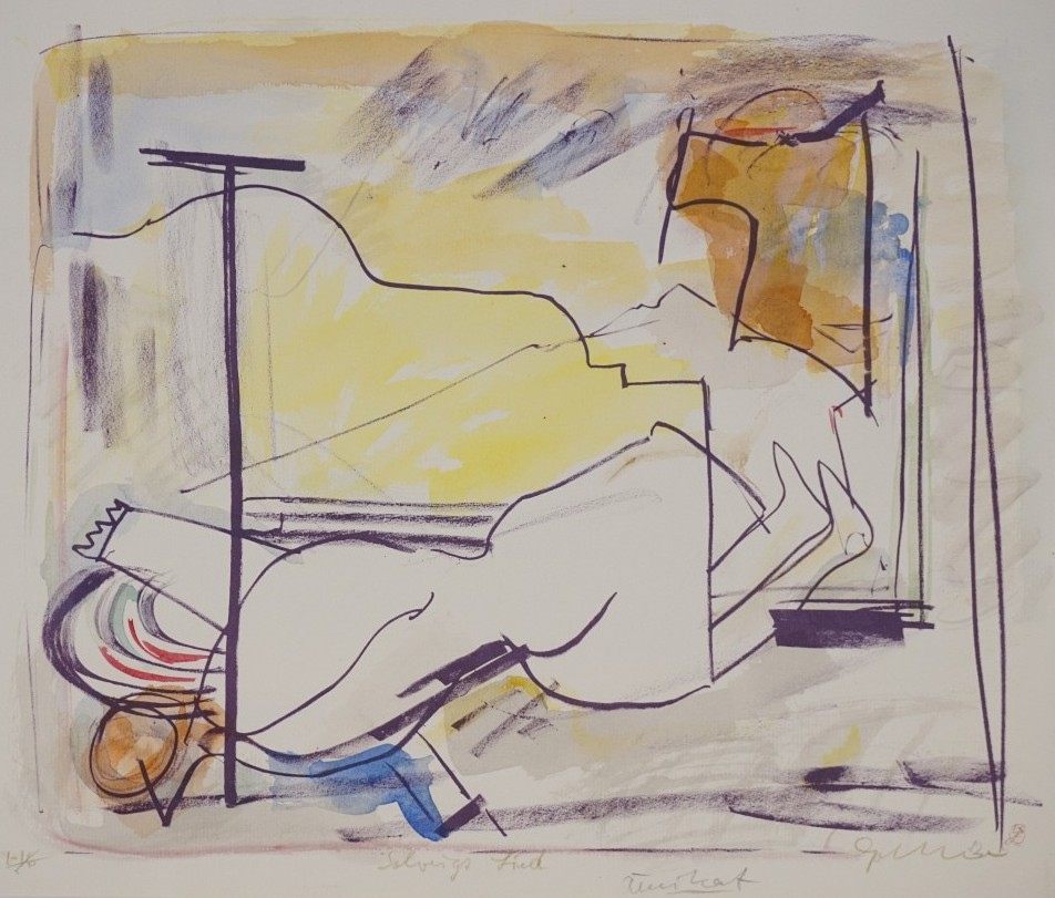 Galerie Solveigs LiedLithografie überzeichnet mit Tusche/Kreide, 33,0x40,0 36,0x48,7 cm, 1982Goltzsche Dieter