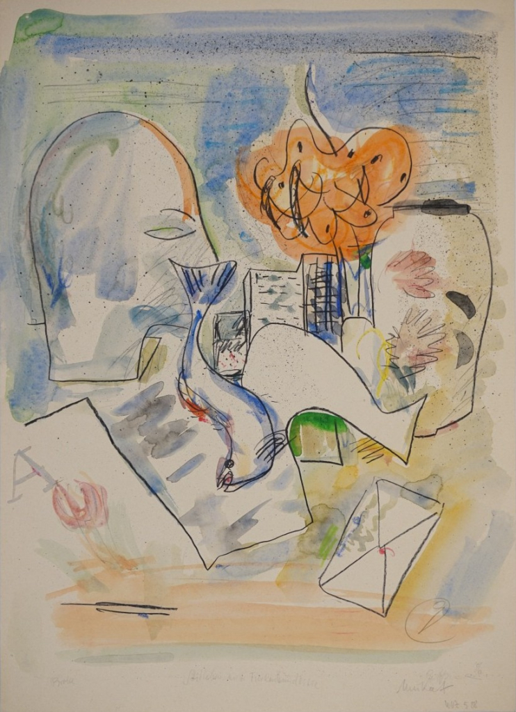 Galerie Stilleben mit TürkenbundblumeLithografie überzeichnet mit Tusche und Grafit, 49,0x35,5 cm, 1986Goltzsche Dieter
