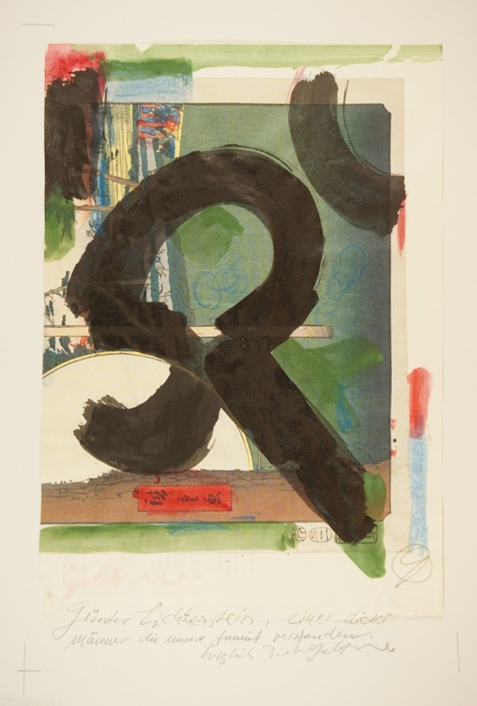 Galerie Einer dieser Männer, die unsere Armut verstandenTusche über Lithografie, 32,5x22,7 cm, 2012Goltzsche Dieter
