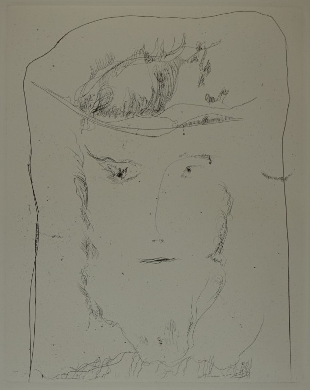 Galerie Bl.1 Herausgeholt aus dem Grasblickenden Schweigen des PilgrunisMappe: Galerie "oben" Nr.4 1983Radierung/Kaltnadel, 24,5x19,2 47,0x35,5 cm, 28/30 1982Altenbourg Gerhard