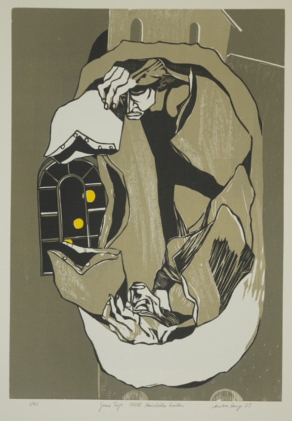 Galerie Graue Tage ODER Häuslicher FriedenFarbholzschnitt, 50,0x35,0 60,0x47,0 cm, 2/42 2025Lange Andrea