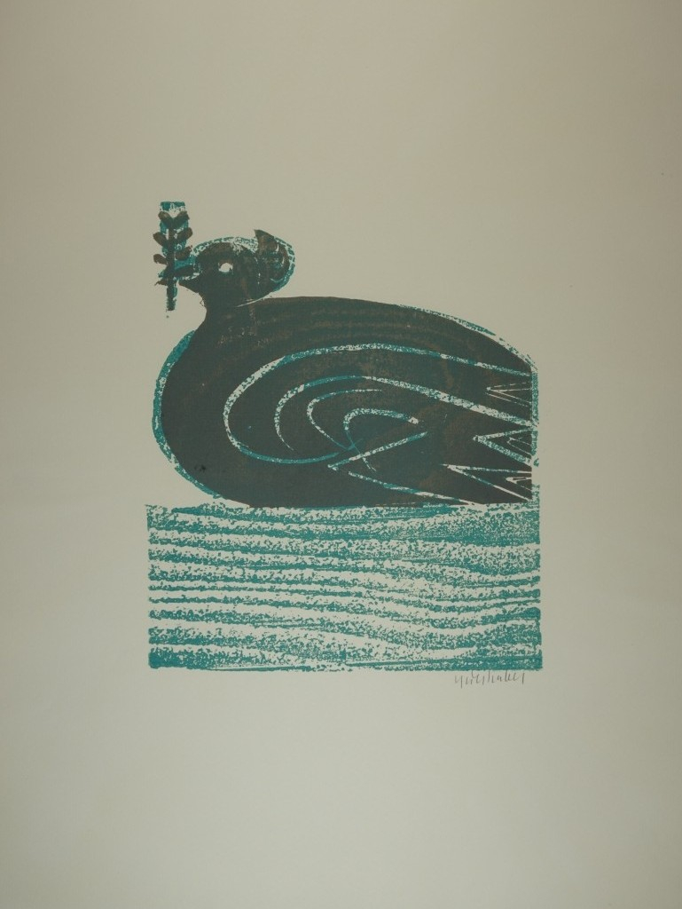 Galerie Noas Taube Bl.5Mappe: Kabinettpresse 18.Druck "Ergebnisse II"Farbholzschnitt, 20,7x40,0 25,0x50,0 cm, 16/115Grieshaber HAP