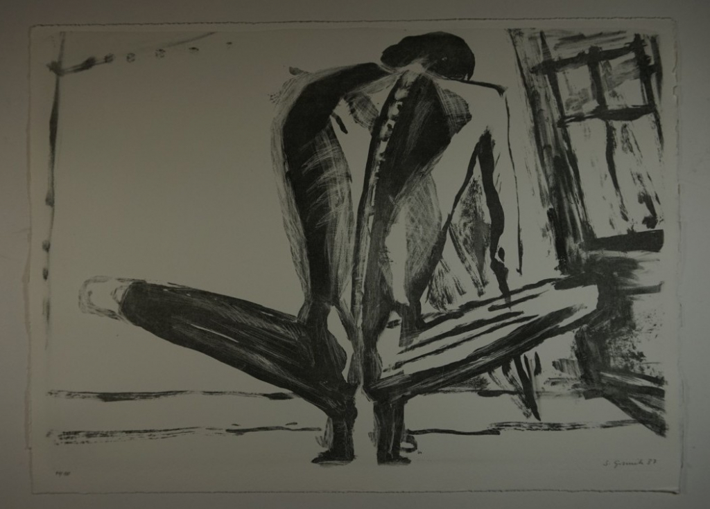 Galerie Bl.5 HockendeMappe: Berliner Grafikpresse "Wir sind einmal Ganze gewesen"Lithografie, 54,0x39,5 37,0x51,5 cm, 70/100 1987Grzimek Sabina