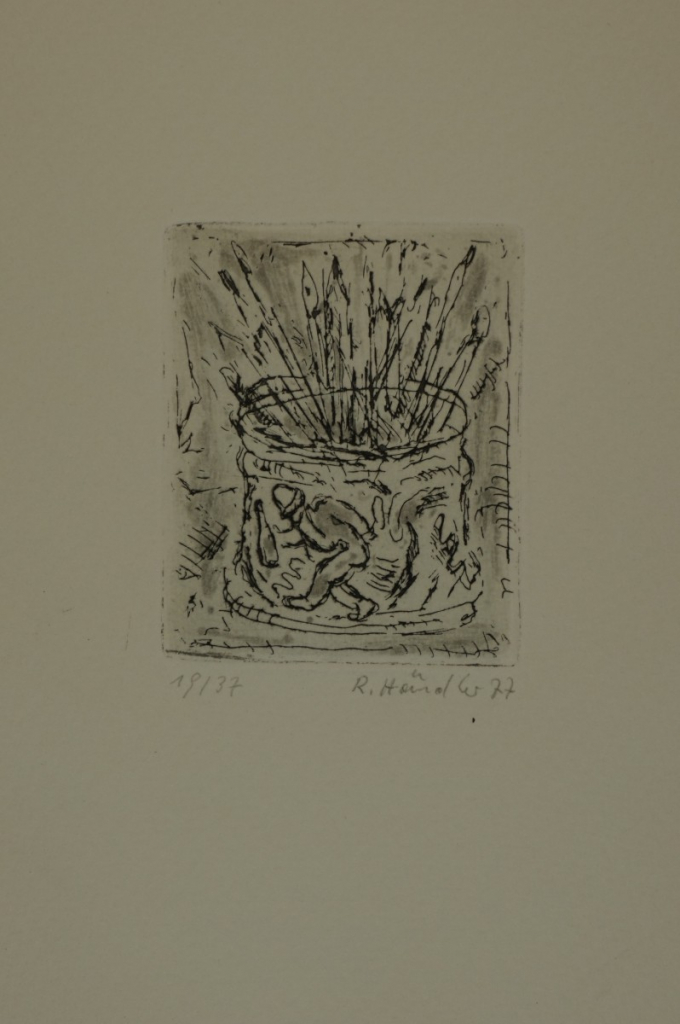 Galerie Bl.5 o.T. StilllebenMappe: Händler R. "10 Radierungen"Radierung, 8,0x6,8 21,2x16,0 cm, 19/37 1977Händler Rolf