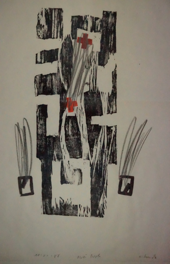 Galerie Bl.2 zwei BooteMappe: Baumgart/Hanske "Bruchstücke I"Grafit über Holzschnitt, 60,0x40,0 42,0x50,5 cm, X/X 11.11.1988Hanske Andreas