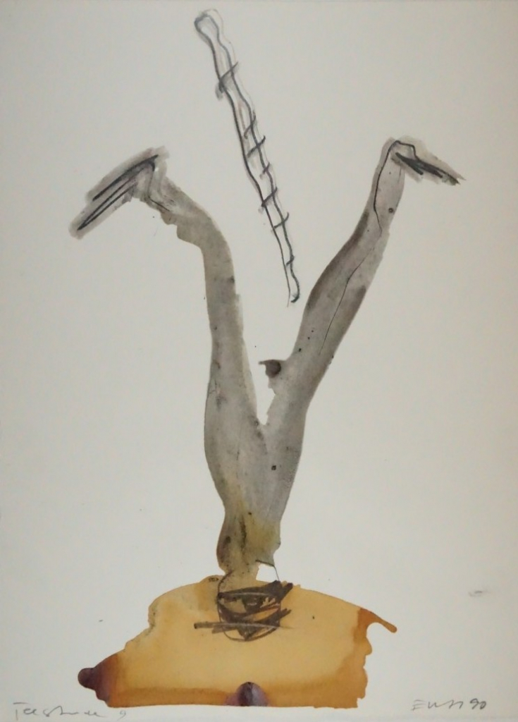 Galerie Bl. 5 TeestundeMappe: A DREI 1/90/16 "Transfusion"Mischtechnik, 40,7x29,5 cm, 9/30 1990Hartzsch Erich Wolfgang