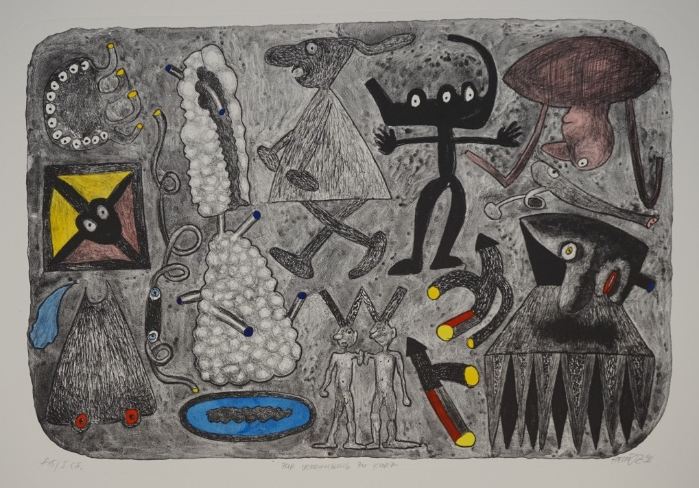 Galerie Zur Vereinigung zu kurzLithografie aquarelliert auf Fotorohkarton, 34,0x49,0 53,5x79,3 cm, A15F.C.F.1993Heinze Frieder
