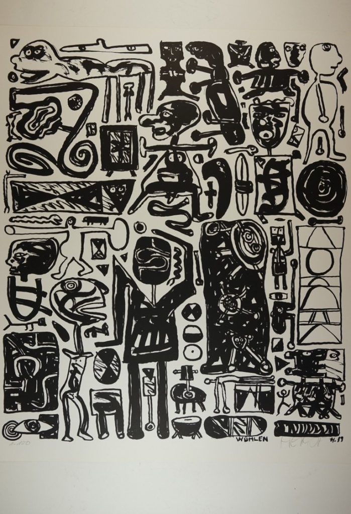 Galerie wühlen Bl.1Mappe: Edition Antenne "Fuss-Lahm" 1990Siebdruck, 69,0x59,0 75,0x64,0 cm, 1-150 1989Heinze Frieder