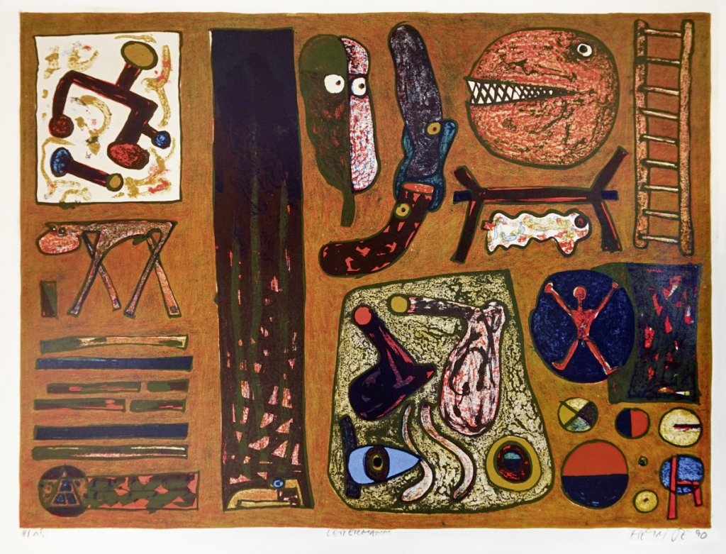 Galerie Bl.3 LeitermannMappe: Leitermannedition "Das Lächeln am Fuße der Leiter"Zinklithografie auf Fotorohkarton , 50,5x67,0 56,5x72,0 cm, 1/15 1990Heinze Frieder