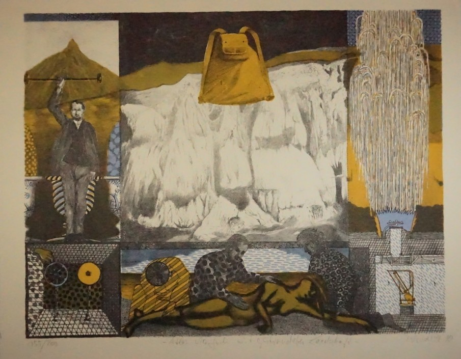 Galerie Atlas vierfach mit gestrandeter LandschaftMappe: Reclamverlag Grafikedition VIII "Landschaft"Lithografie, 33,5x44,0 cm, 155/200 1980Heinze Frieder