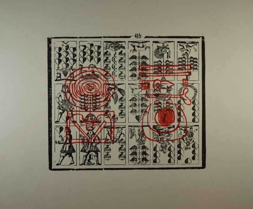 Galerie Bl.4 SeeMappe: Heinze F./Wegewitz O. "Kartenspiele"Holzschnitt über Lithografie (v. Originalplatten der Spielkartenfabrik), 34,0x39,4 60,0x80,0 cm, A 14 1989Heinze Frieder