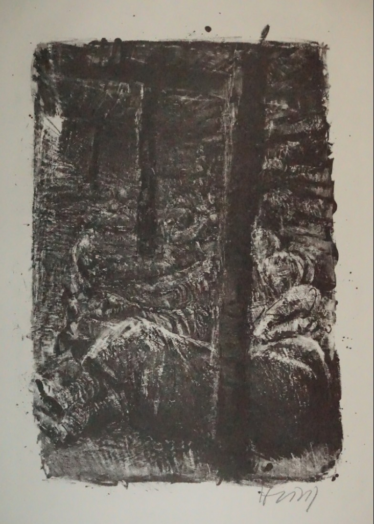 Galerie Verwundeter mit Sanitäter Bl.12Mappe: Reclamverlag Grafikedition V Heisig B. "Krieg"Lithografie, 28,0x20,5 cm, 38/80 1976-78Heisig Bernhard