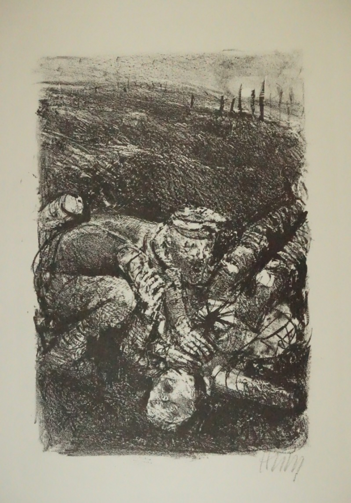 Galerie Verwundeter Kamerad Bl.23Mappe: Reclamverlag Grafikedition V Heisig B. "Krieg"Lithografie, 27,0x18,5 cm, 38/80 1976-78Heisig Bernhard