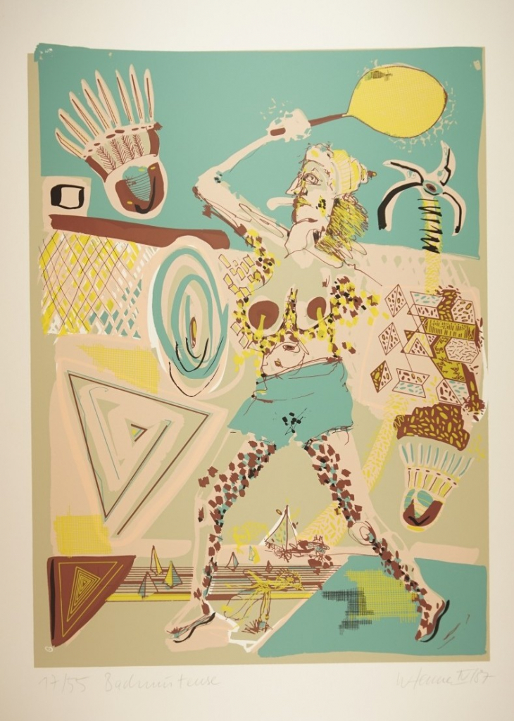 Galerie BadminteuseMappe: Tauer Druck "Sport + Bewegung"Siebdruck, 37,5x50,3 62,0x46,0 cm, 17/55 1987Henne Wolfgang
