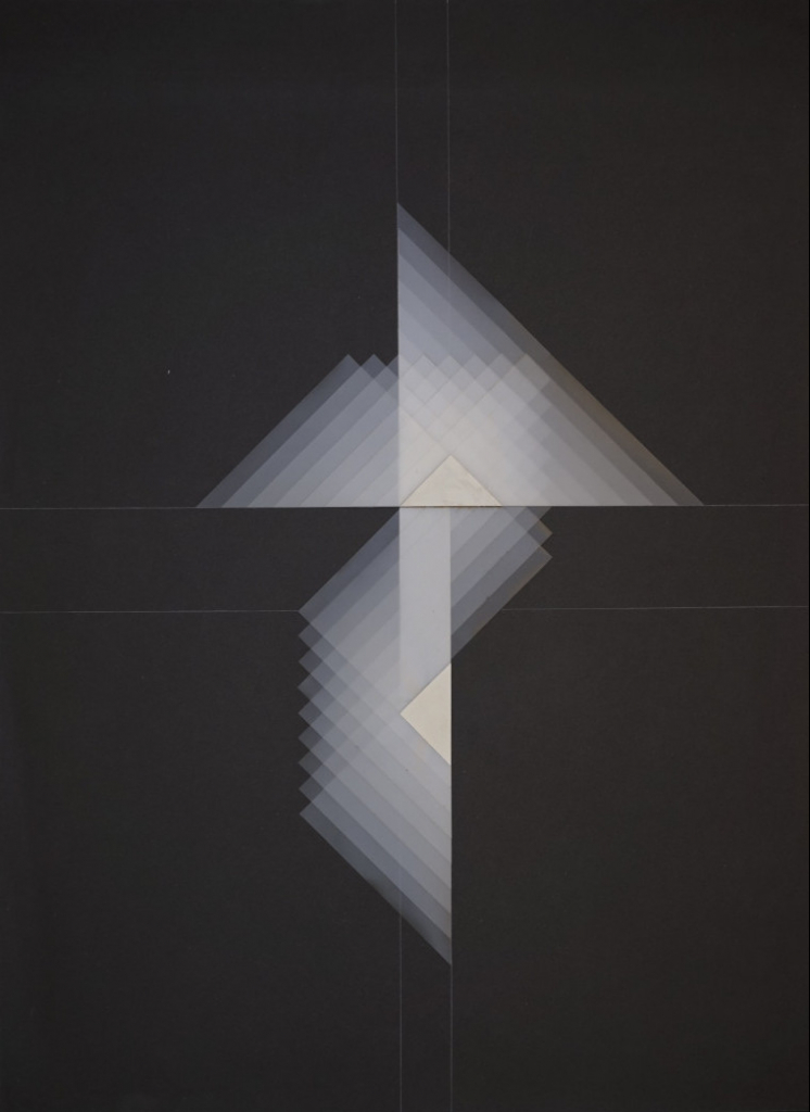 Galerie Transparente Schichtung serieller Dreiecke Bl.1Collage/Blei, 88,0x68,0 cm, 1985/8Adler Karl-Heinz