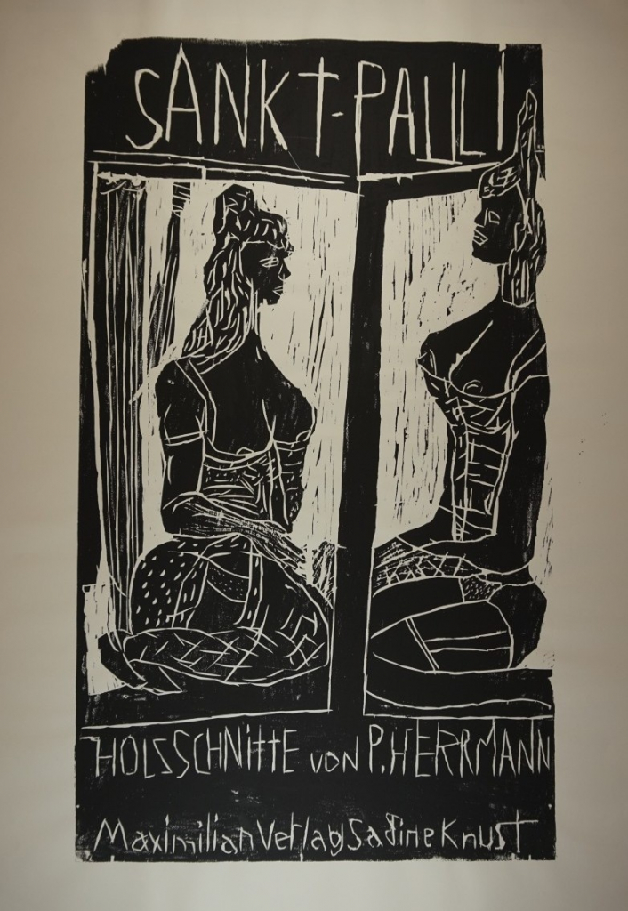 Galerie St.Pauli XI DeckblattMappe: Herrmann P. "St.Pauli"Holzschnitt, 88,5x50,5 106,0x78,0 cm, Probe 1985Herrmann Peter