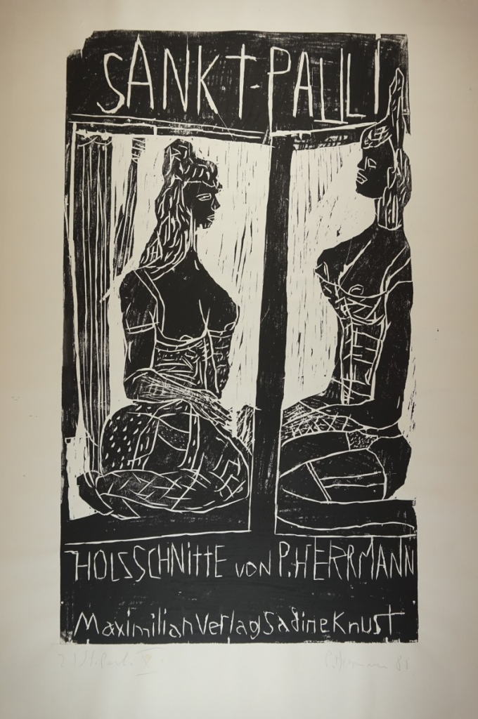 Galerie St. Pauli XMappe: Herrmann P. "St.Pauli"Holzschnitt, 78,0x43,4 106,0x78,5 cm, Probe 1985Herrmann Peter