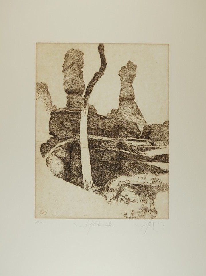Galerie Bl.5 HerkulessäulenMappe: Galerie "oben" Nr.4 1983Radierung, 29,0x22,0 47,0x35,5 cm, 28/30 1981Herzog Walter