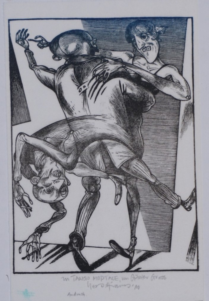 Galerie In Tango mortale von Gunter GrassHolzschnitt, 15,0x11,0 18,0x11,5 cm, Andruck 2010Hirsch Karl-Georg