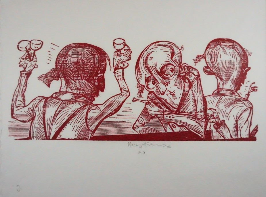 Galerie Bl.9 o.T.Mappe: Hirsch K.-G. Edition Zwi 2007 Nr.8 "Die Statue"Holzschnitt, 12,2x29,7 24,8x31,5 cm, EA 2006Hirsch Karl-Georg