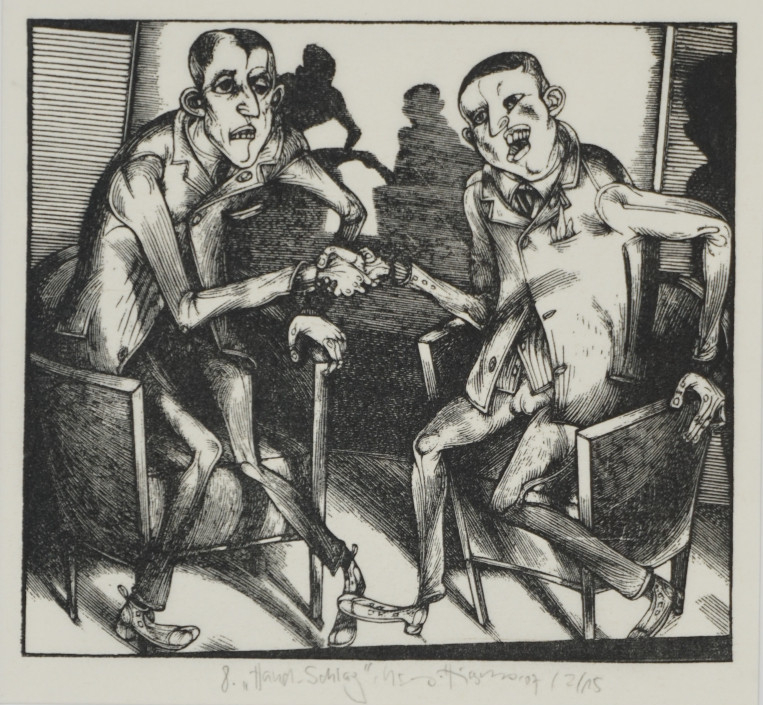 Galerie Bl.9 HandschlagMappe: Hirsch K.-G. Edition Zwi 2009 Nr.9 "Stiche"Holzschnitt, 12,7x14,1 32,0x24,0 cm, 2/15 2009Hirsch Karl-Georg