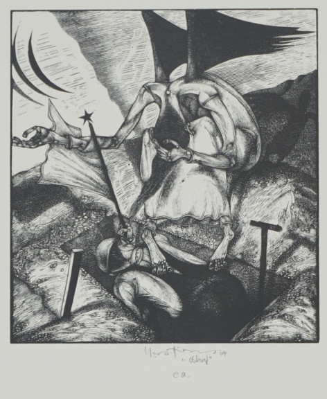 Galerie ? Bl.4Mappe: Hirsch K.-G. Edition Zwi 2006 Nr.5 "Mummenschanz"Acrylstich, 13,0x12,0 cm, EA 2004Hirsch Karl-Georg