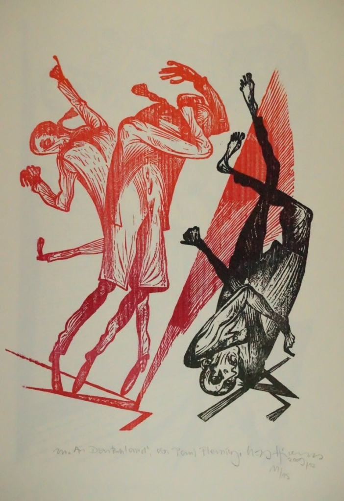 Galerie Bl.4 zu "An Deutschland" von Paul FlemingMappe: Hirsch K.-G. Edition Zwi 2012 Nr.12 "Durcheinander"Farbholzschnitt, 24,5x20,0 36,0x26,0 cm, 11/15 2009Hirsch Karl-Georg