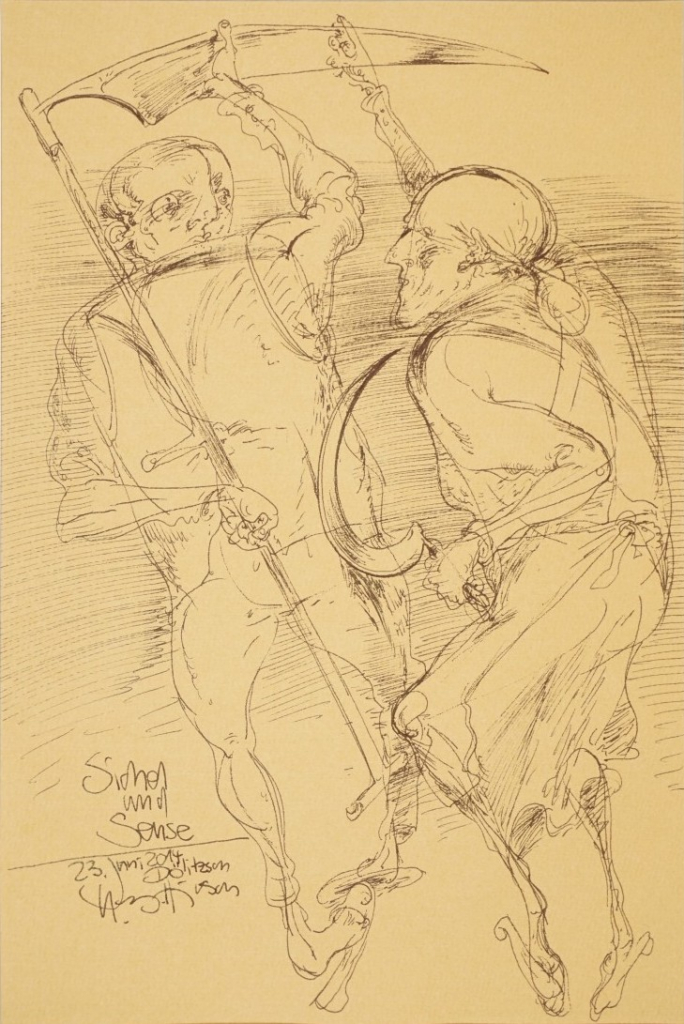 Galerie Sichel und SenseMappe: Hirsch K.-G. Edition Zwi 2014 Nr. 14 "für Róza"Feder in Tusche , 26,5x17,5 cm, 23.6 2014Hirsch Karl-Georg