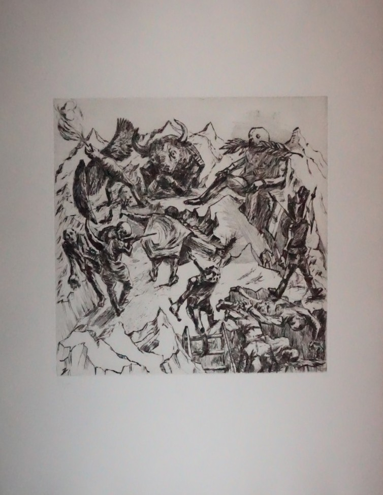 Galerie Bl.2Die folkkloristische DiktaturMappe: John J. "America Latina"Radierung, 33,0x32,5 60,5x47,5 cm, 24/65 1987John Joachim