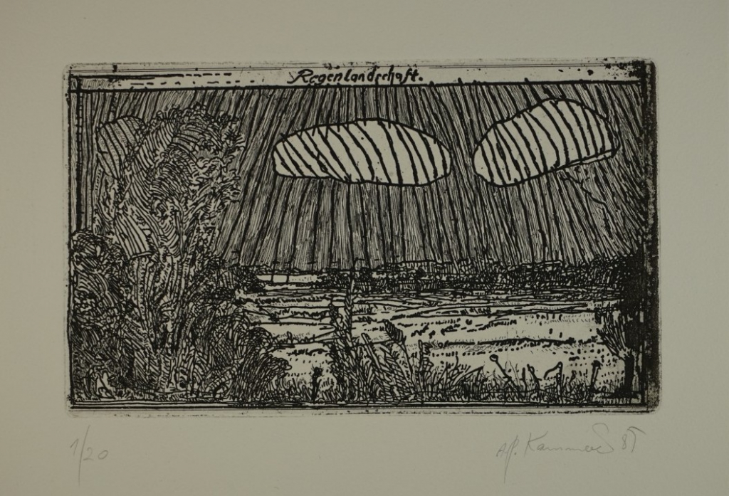 Galerie Bl.5 RegenlandschaftMappe: Kammerer A. P. "wer weiß, wie´s morgen wird"Radierung, 12,8x21,5 39,5x27,0 cm, 1/20 1987Kammerer Anton Paul