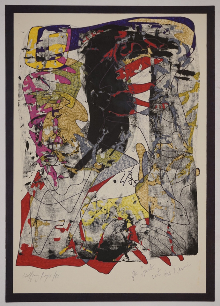 Galerie Der Spieler mit der KanneSiebdruck/Gouache über Lithografie, 59,5x42,0 cm, 1985Berger Wolfgang