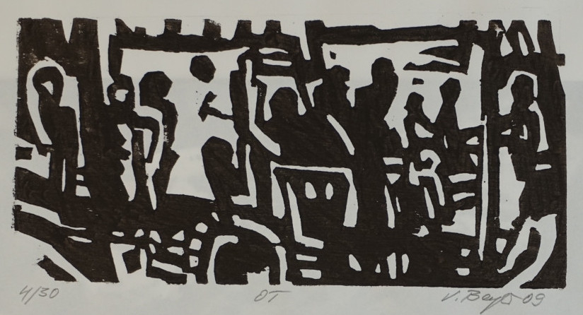 Galerie Bl.1 o.T.Mappe: 9.HolzbildhauerpleinairHolzschnitt, 10,5x21,5 30,0x40,0 cm, 4/30 2009Beyer Volker