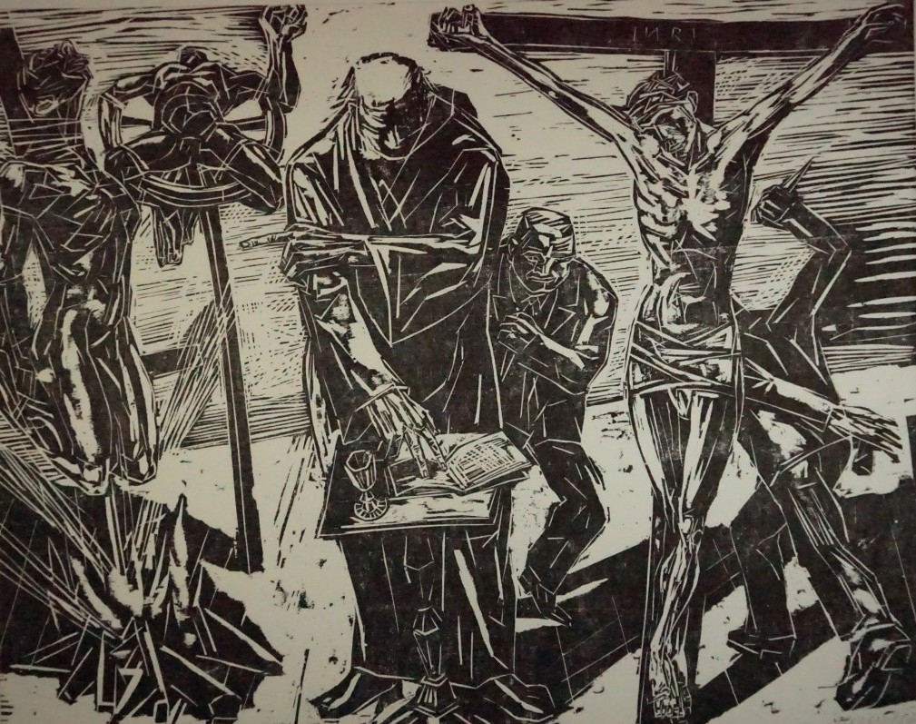 Galerie Der auf das Wort setzt,glaubet durch Überzeugung Bl.3Mappe: Reclamverlag Grafikedition XV "Luther zu Ehren"Holzschnitt, 40,0x50,5 cm, 60/150 1983Kuhrt Rolf