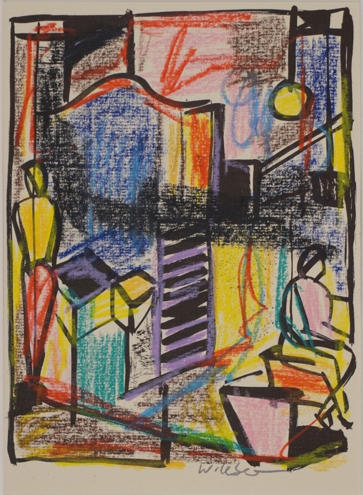 Offsetlithografie überzeichnet mit Farbkreiden