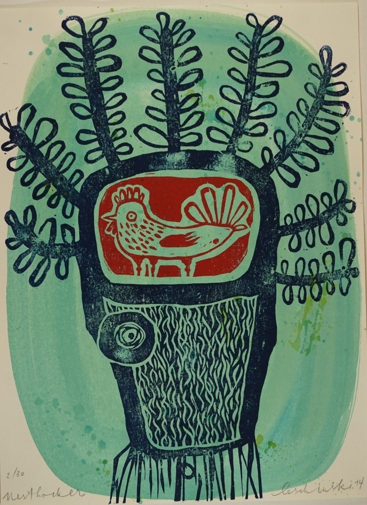 Galerie Bl. 6 NesthockerMappe: 14.Holzbildhauerpleinaircolorierter Farbholzschnitt, 40,0x29,7 cm, 2/30 2014Leschinski Nora