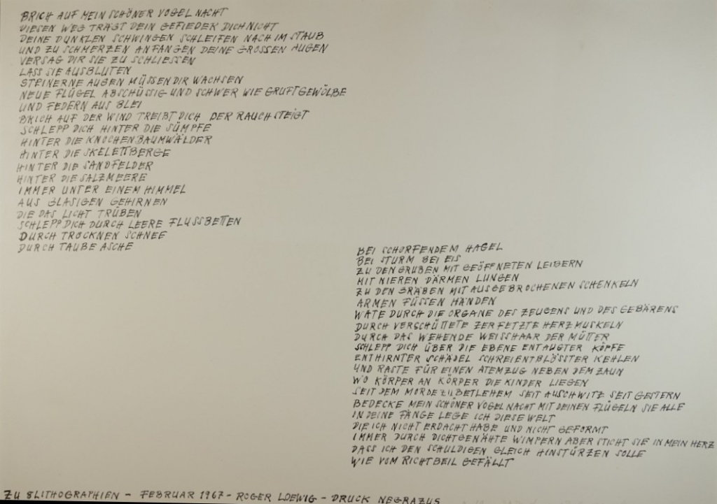 Galerie Titelblatt TextblattMappe: Loewig R. "Brich auf mein schöner Vogel Nacht"27,0x52,0 cm, ProbeLoewig Roger