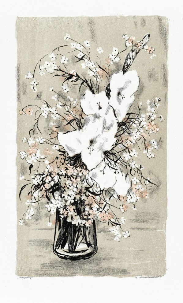 Galerie Bl.9 GladiolenMappe: Grafik-Presse "eikon" Blätter aus LeningradFarbzinkografie, 52,0x30,0 64,5x50,0 cm, 3/100Masslevnikowa J.N.