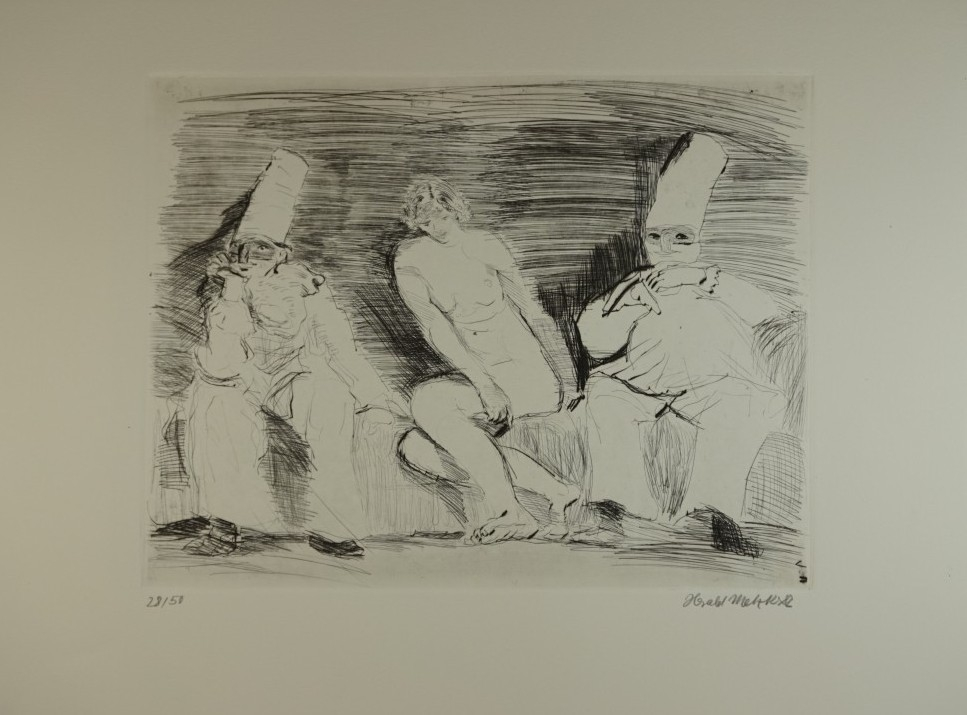Galerie Bl.8 o.T. Akt m. zwei HarlekinenMappe: Galerie "oben" Nr.4 1983Radierung/Kaltnadel, 24,5x31,6 38,5x47,0 cm, 28/50 1982Metzkes Harald