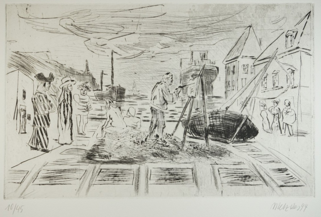 Galerie Bl. 6 o.T. Maler im HafenMappe: Hommage à Niemeyer-HolsteinRadierung, 24,5x39,0 70,0x53,0 cm, 10/45 1995Metzkes Harald