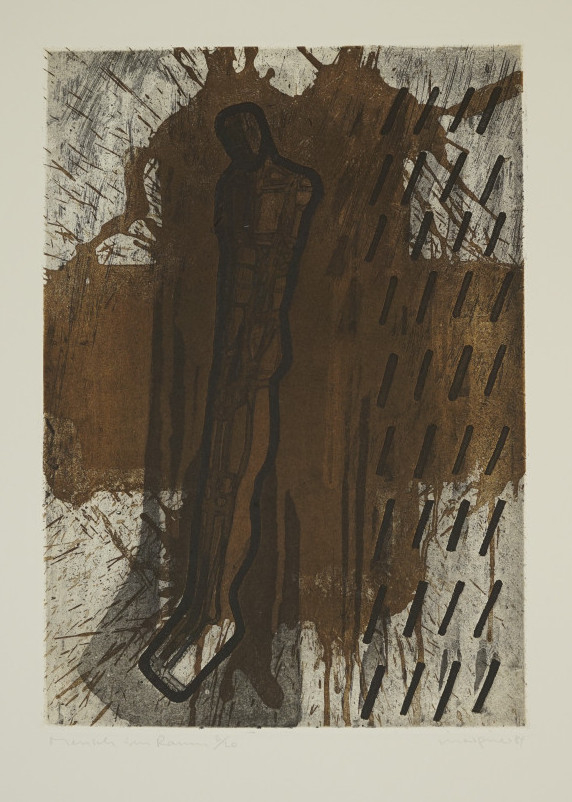 Galerie Mensch und Raum Mappe: "Der Mensch und die Stadt" zum 100. Geb. von Max BeckmannFarbradierung von zwei Platten, 49,0x34,5 70,0x53,0 cm, 6/20 1984Morgner Michael