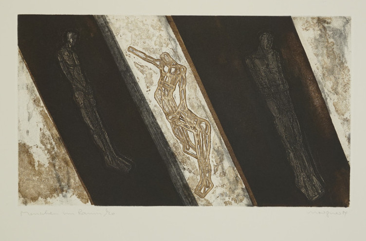 Galerie Mensch und Raum Mappe: "Der Mensch und die Stadt" zum 100. Geb. von Max BeckmannFarbradierung von zwei Platten, 28,0x49,0 53,5x70,0 cm, 6/20 1984Morgner Michael