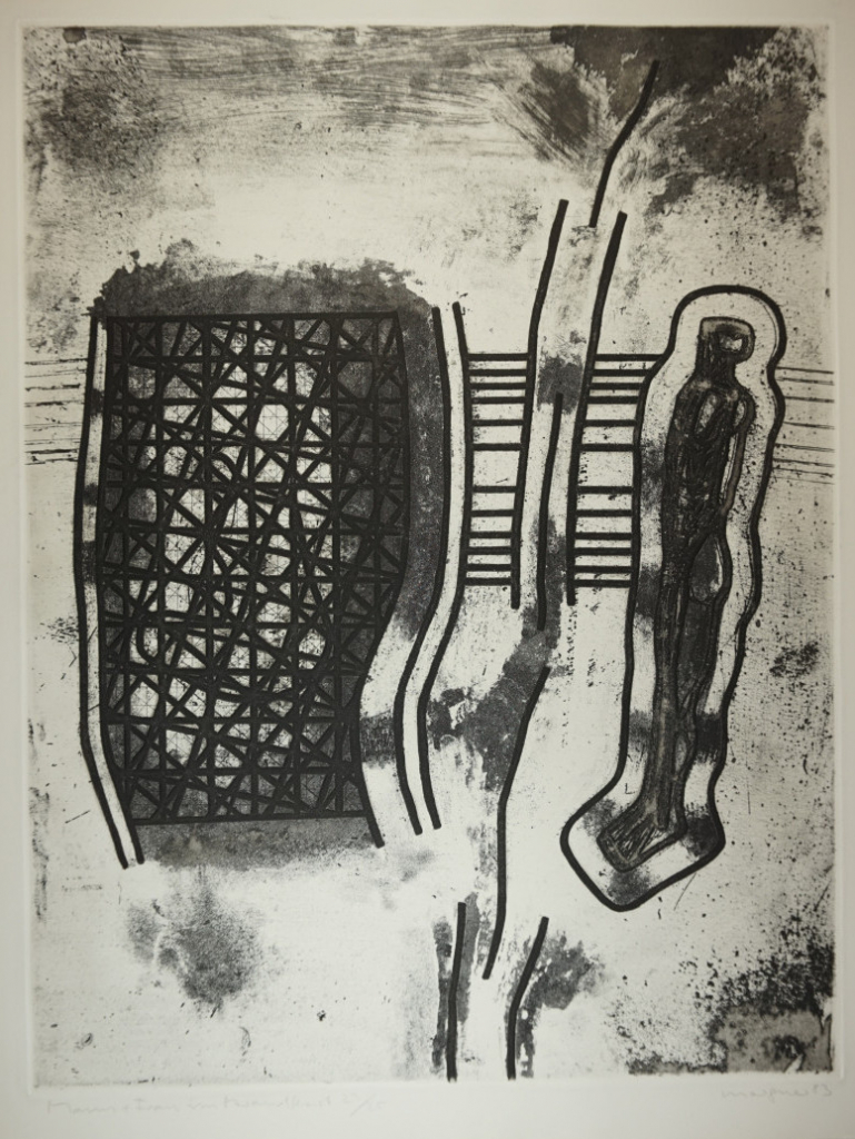 Galerie Bl.6 Mann und Frau im StrandkorbMappe: Morgner M. "Strand"Radierung, 64,2x49,2 70,5x53,5 cm, 23/25 1983Morgner Michael