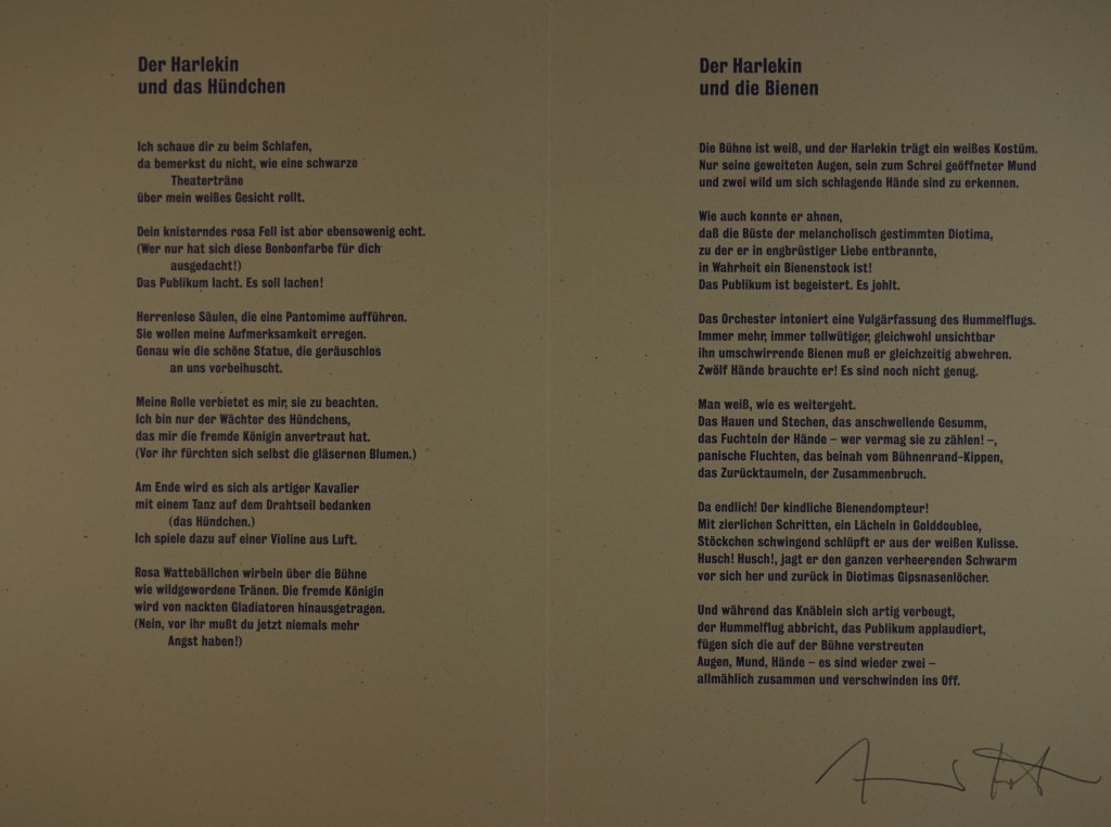 Galerie Bl.2 Der Harlekin und das HündchenMappe: 70.Geburtst.Karl-Georg HirschText, 31,0x20,0 cm, 47I100 Böhme Thomas