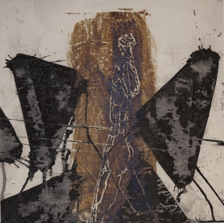 Galerie o.T. (Schreitender Mann)Tusche/Lavage/Monotypie mit Asphaltlack auf Seidenpapier, 52,4x52,4 cm, 1990Morgner Michael